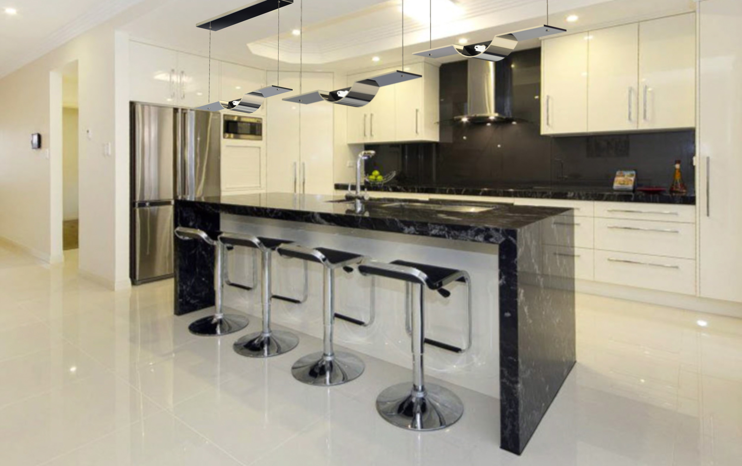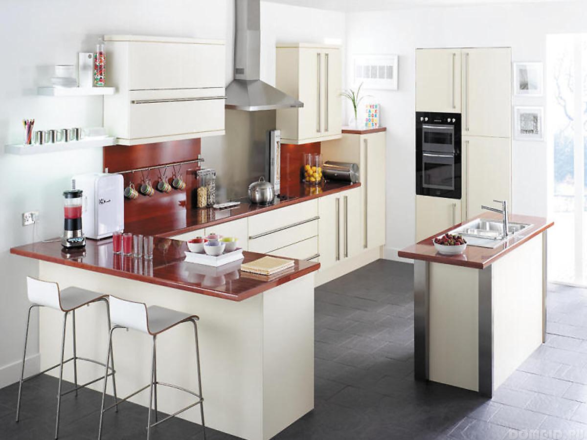 Наличие дополнительных возможностей просто необходимо такому варианту мебели. Барную стойку обязательно снабжают держателями для бокалов, бутылок. Желательна подсветка, вазы для фруктов, полочки для посуды, незначительное количество мелкой техники. Необходимо чётко соблюдать баланс, каждая мелочь способна создать хаос.