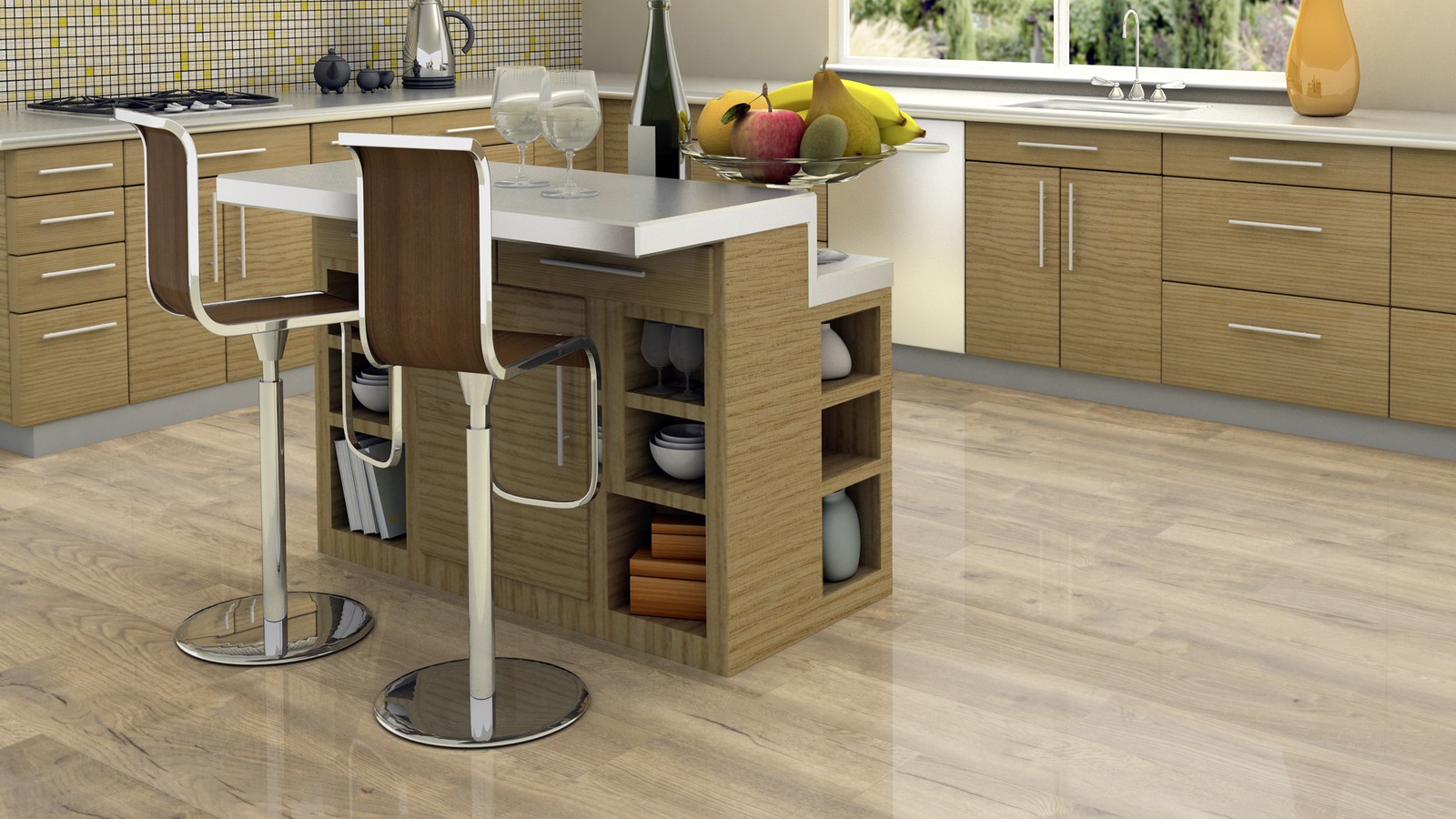 Дерево считают неплохим выбором для кухни. Выполненные из него изделия, способны дополнить любой интерьер. Материал долговечен, практичен, экологически безопасен, но подвержен разрушению от регулярного воздействия влажной среды, бытовых химических средств. Цена на натуральное дерево довольно высокая.