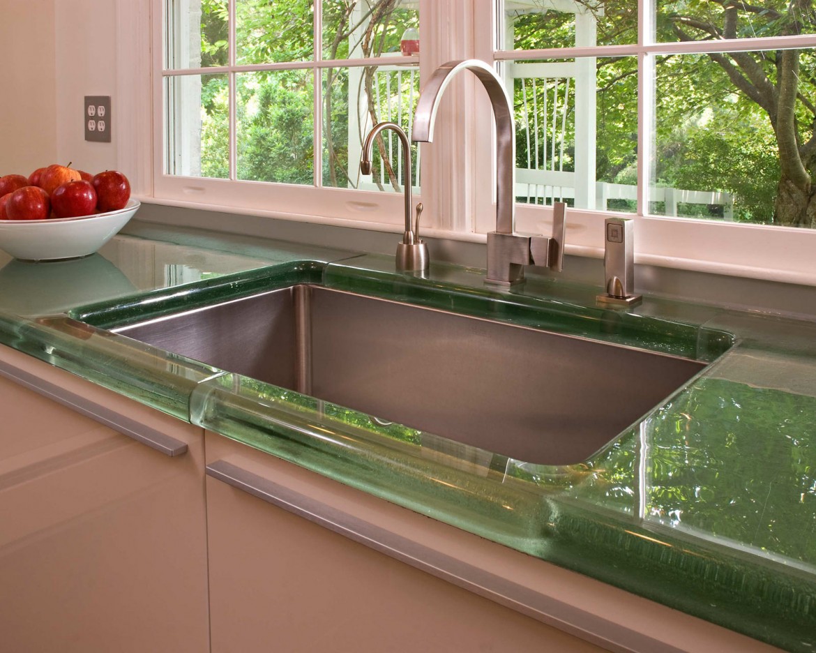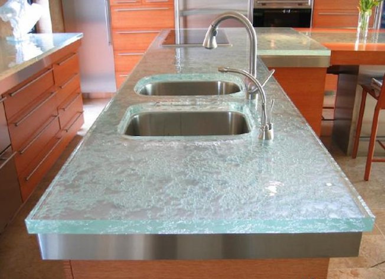 Делают прозрачную столешницу, используя в качестве формы стекло: