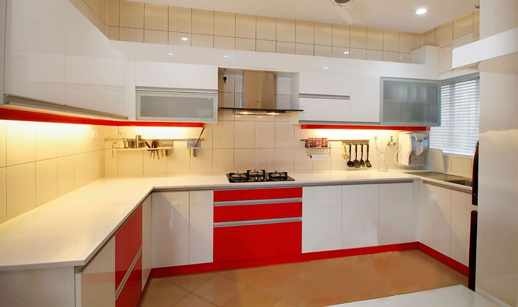 Очень удачно выглядит белая кухня с красным в сочетании: