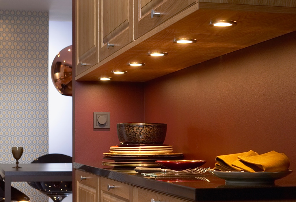 - Светодиодные и галогенные лампы очень экономны по сравнению с другими. Экономия энергии за счёт возможности раздельного включения. Например, вы можете включить свет только там, где принимаете пищу. Вас будет окружать приятное приглушенное освещение, а энергия будет расходоваться по минимуму.