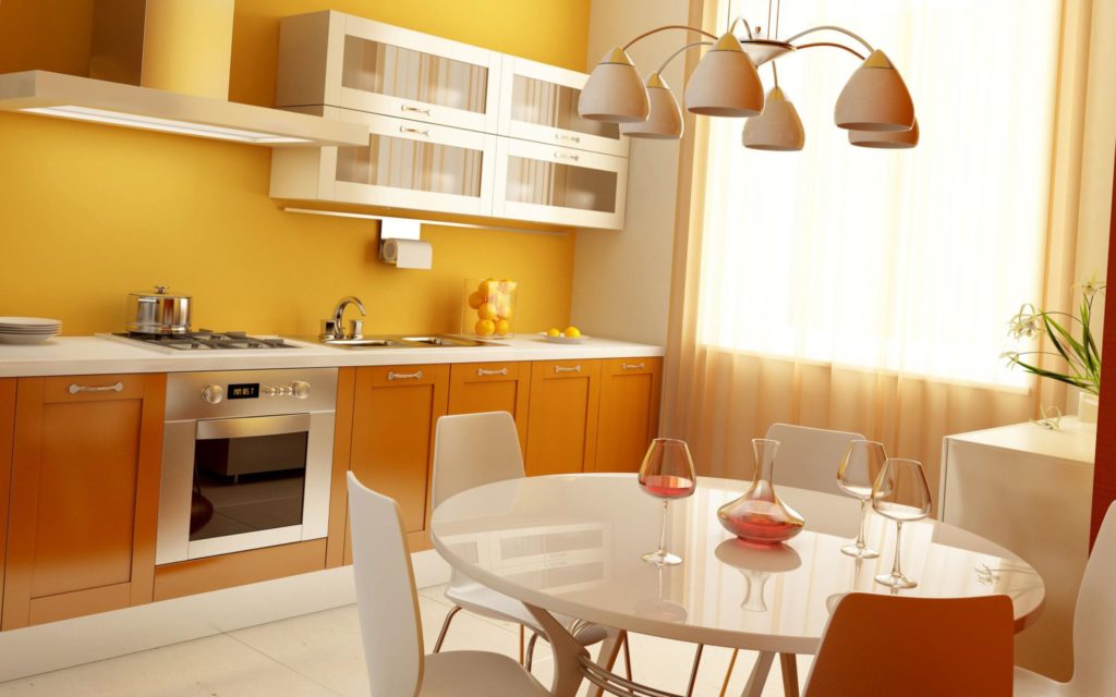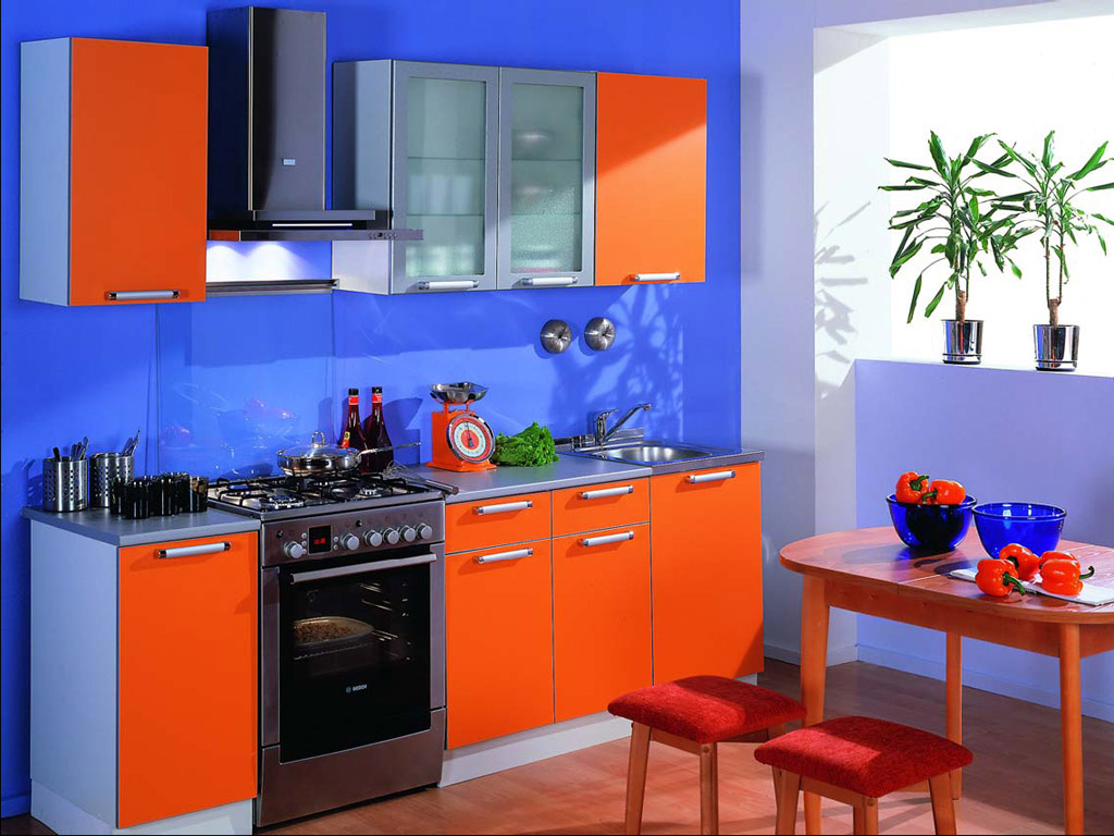 - Оранжевый цвет обладает теми же стимулирующими качествами, что и красный, но при этом его влияние на психику более мягкое. В кухне, окрашенной в оранжевые тона, человек будет ощущать приподнятое настроение, а работа пищеварительной системы значительно улучшится.