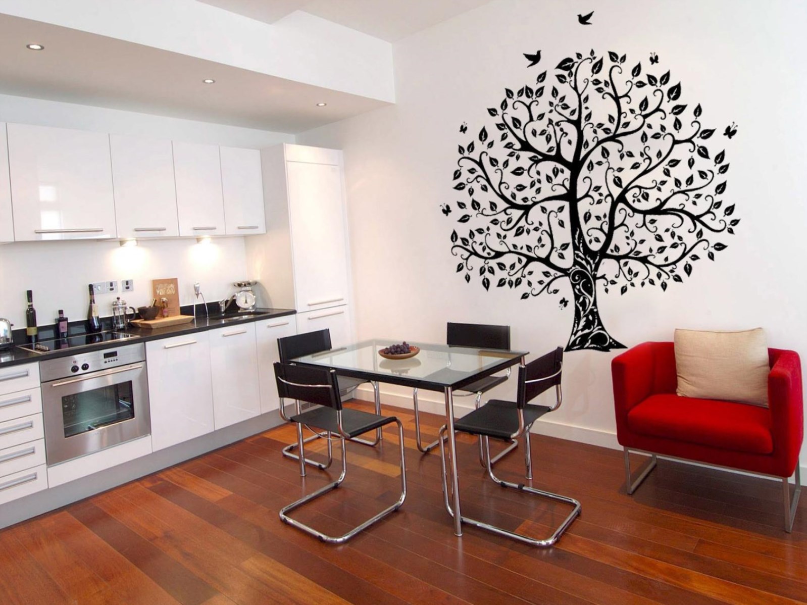 - Маленькую кухню лучше оклеивать обоями с мелким рисунком – это позволит ей выглядеть просторнее;