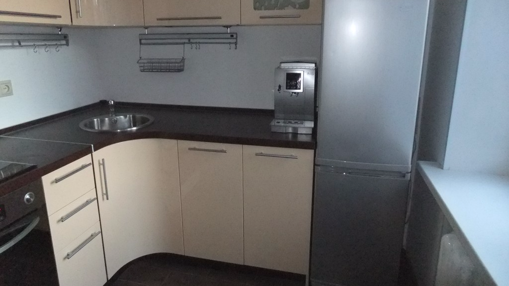 Чаще всего кухня в хрущевке с холодильником устанавливается вдоль оконного проема, создается эффект треугольного рабочего пространства со всеми необходимыми элементами. В данной планировке используется п-образное расположение столешницы или раковины.