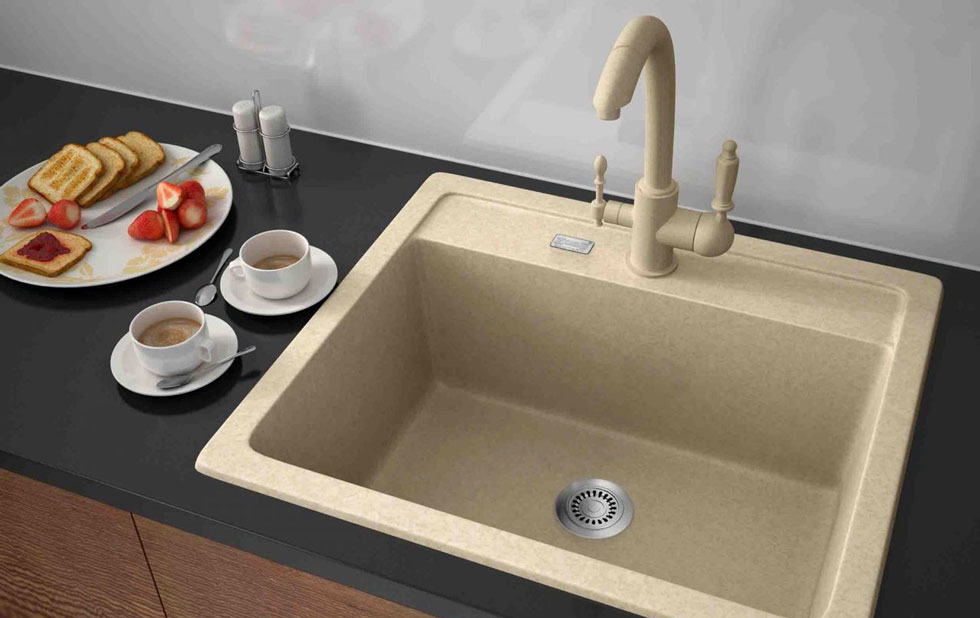 Изделия отлично вписываются в столешницы из искусственного и природного камня, их отличительные особенности: